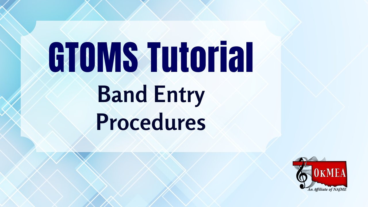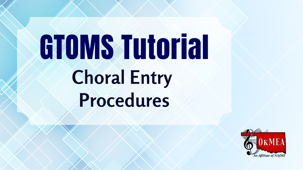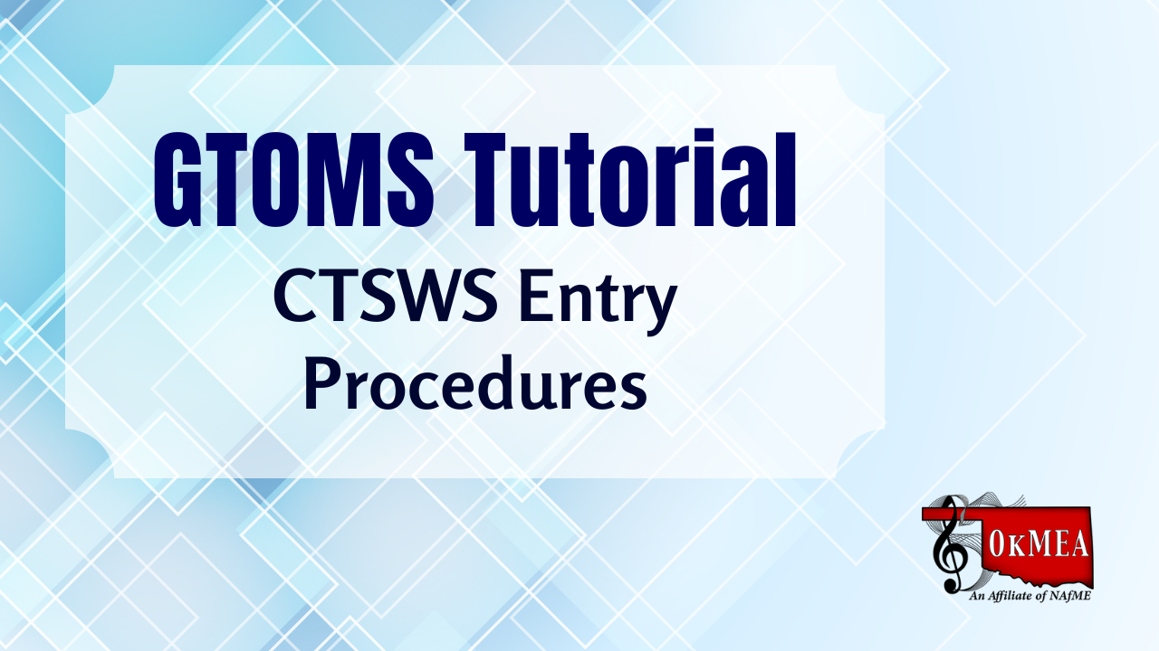 OkMEA will be using G-TOMS for CTSWS, Children’s Chorus, HS Chorus, Band, and Jazz Band auditions and registration this year.
